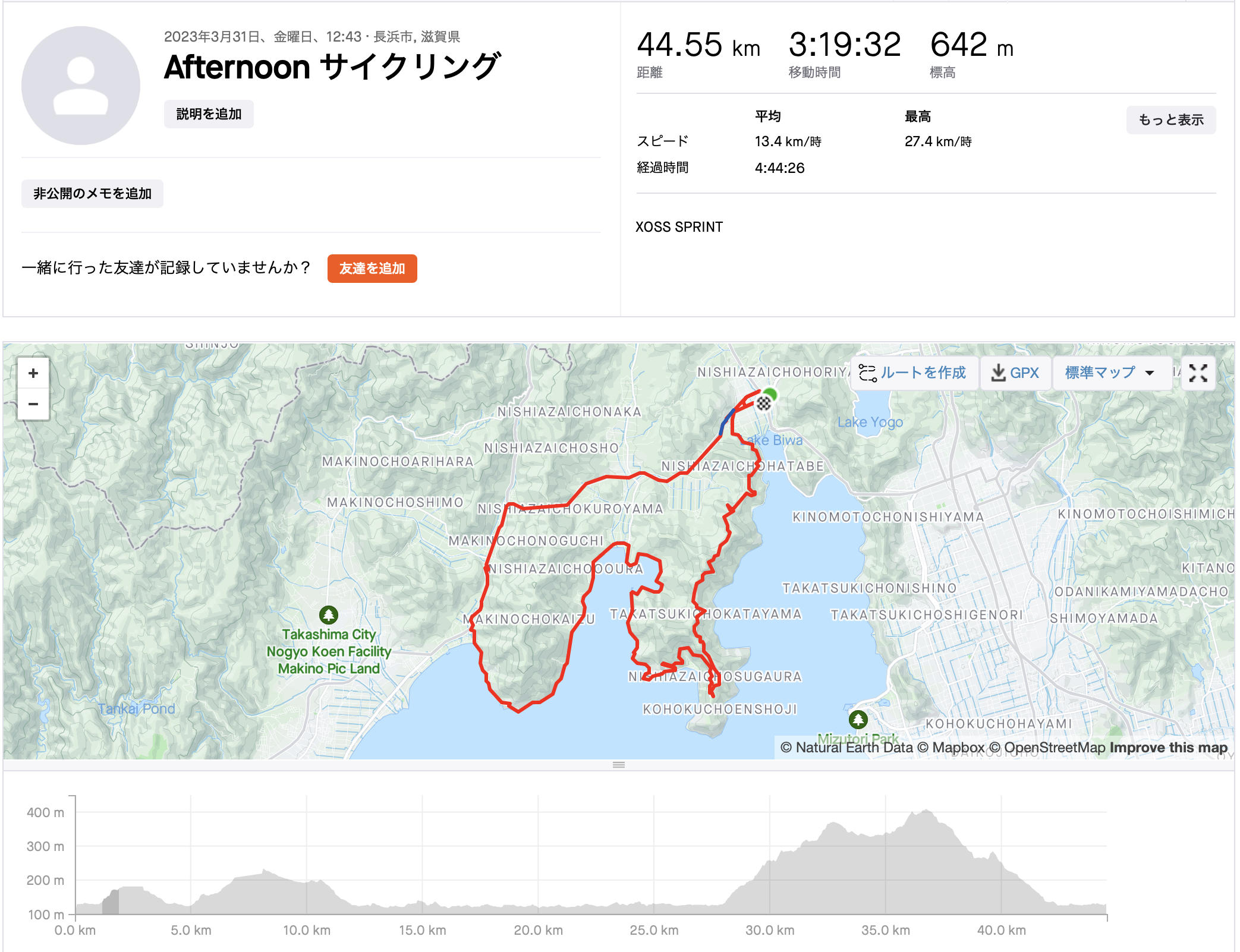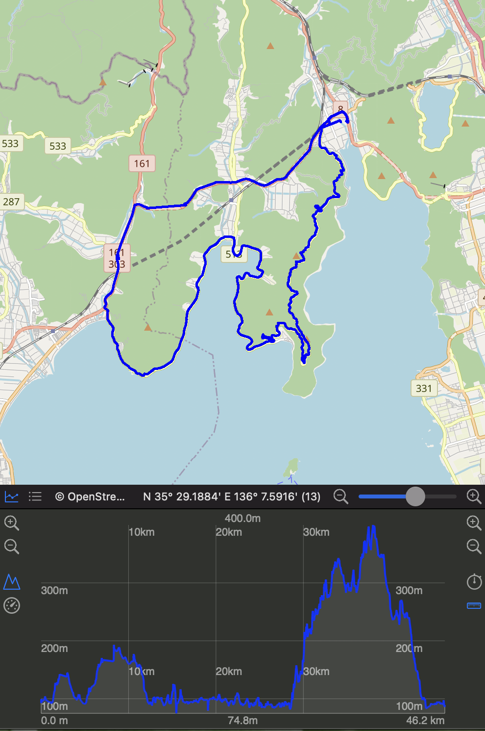 日吉ダム 道の駅スプリングひよし → 小道津 → 府道364号 中地日吉線 → 持越峠 → 宇津峡公園 →