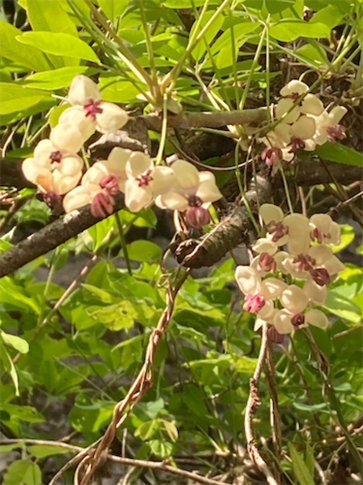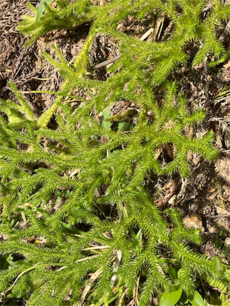 アケビの花? まるで杉の葉のようだ。ヒカゲノカズラ?