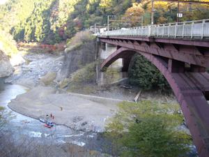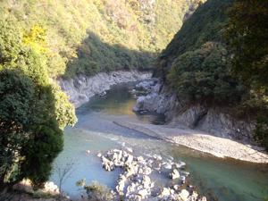 保津川の右岸にトロッコ電車。左岸が道路ハイキングコースとなっている。