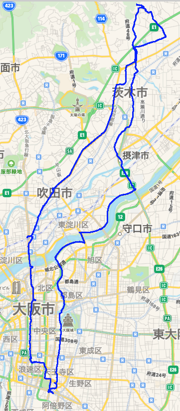 自宅より西国街道を通って大山崎まで。大山崎から171号線、