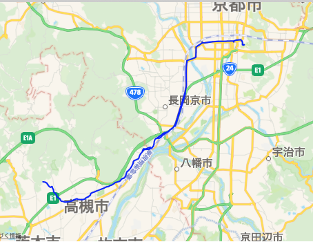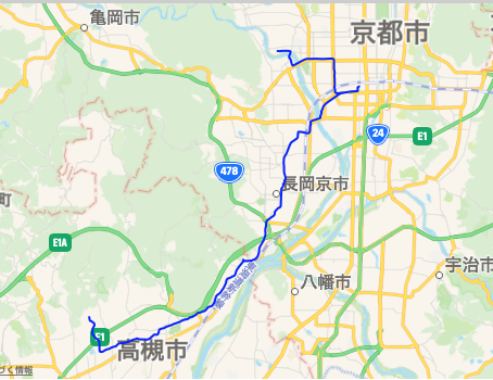 帰りは嵯峨野嵐山から桂川添いに久世橋まで南下し、久世橋をわたって171号線で大山崎へ。