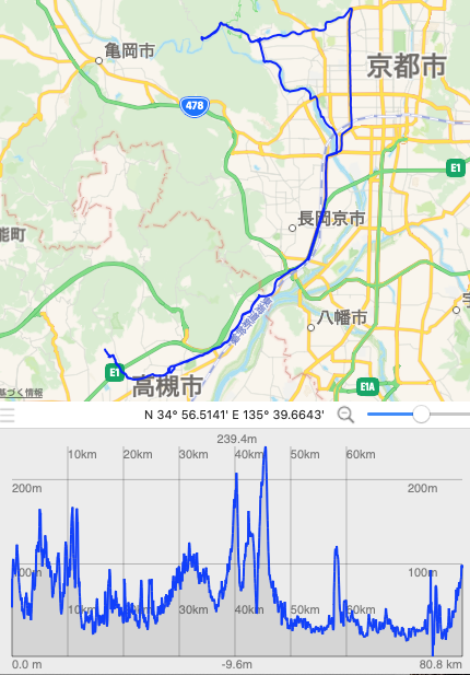 大山崎から西国街道で帰宅。80kmくらいのコースであった。