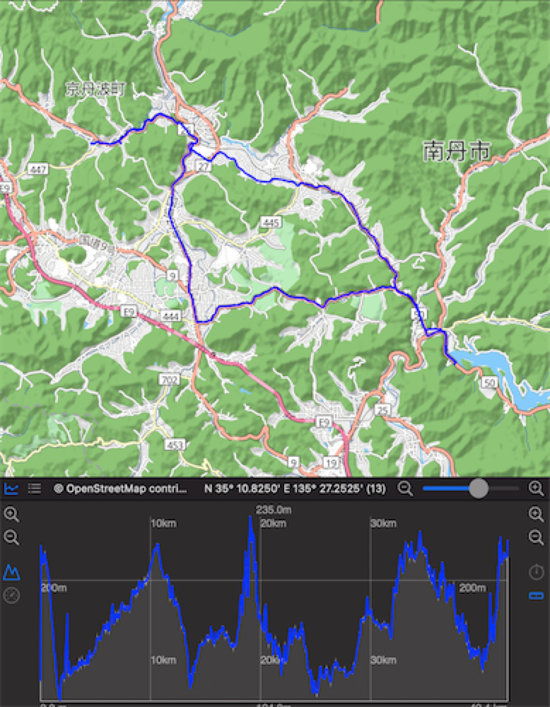 帰りは9号線の道の駅丹波マーケス前の須知の交差点から80号線に入り日吉方面へ。80号線は日陰も多く,道も広くてゆったり走ることができた。ここは京丹波サイクリングコースの一部になっているようだ。なるほどね。JR日吉駅の近くで50号線に合流し,スプリング日吉へ。17時過ぎに到着。