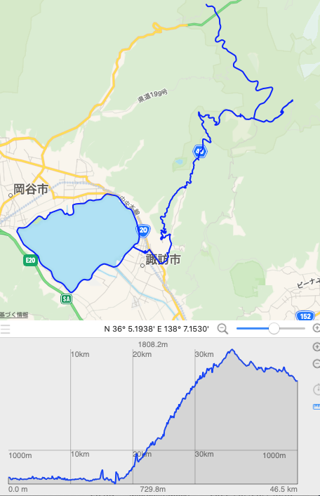 10:30頃自宅発。15:00頃上諏訪着。ビジネスホテルにチェックイン後、諏訪湖を一周(16km)